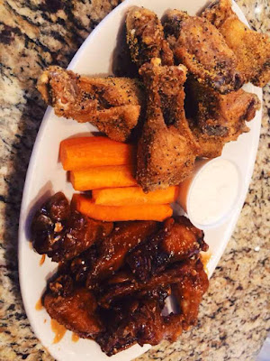 with 2 flavors - one half lemon pepper & the other half teriyaki. Both of